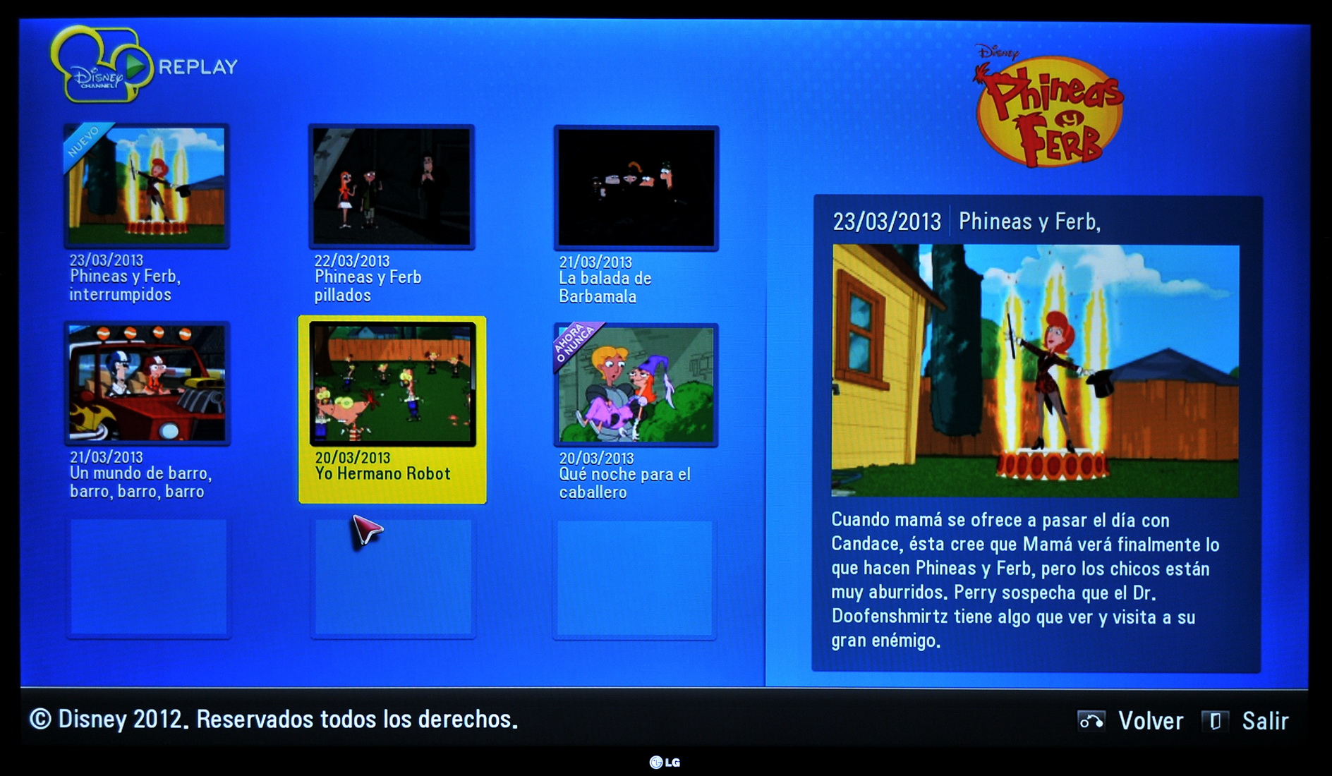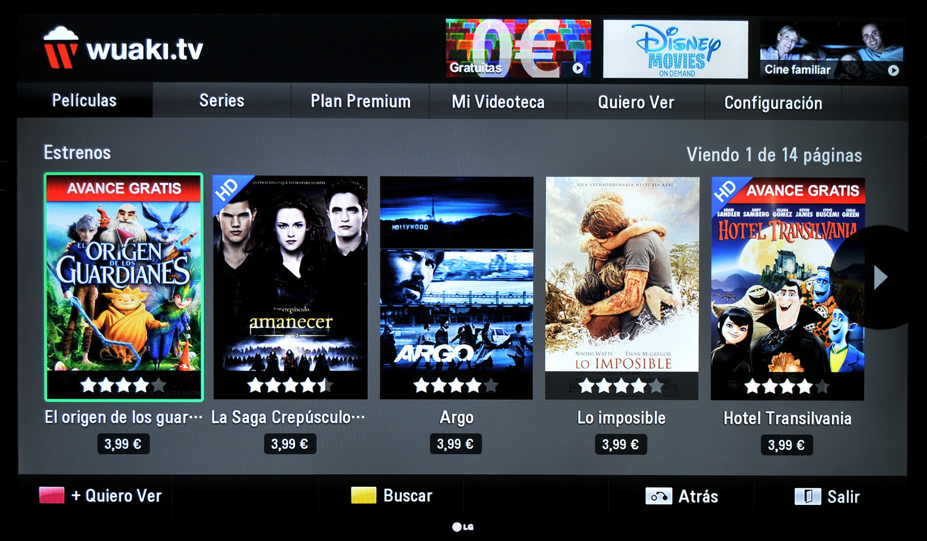 Las aplicaciones de vídeo bajo demanda (YouTube, DailyMotion, ADN Stream, Cine Trailer y Wuaki.tv) son bastante simples y, en el caso de YouTube, nos ha decepcionado un poco ya que únicamente permite filtrar resultados por calidad estándar o HD. No es posible, por ejemplo, filtrar por contenidos 3D, a pesar de que este filtro sí que es seleccionable en la web Youtube.com. La aplicación de Wuaki.tv es un videoclub online con un aspecto muy cuidado y que, en nuestras pruebas, nos causó una buena impresión.