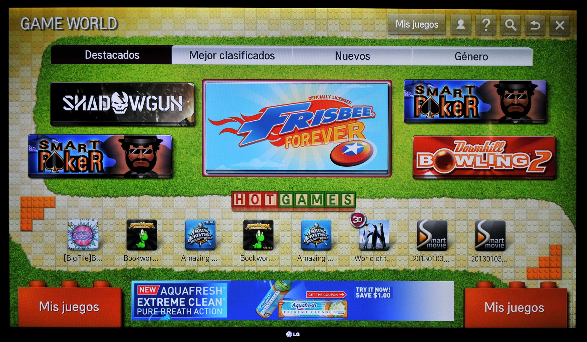 Por medio de LG Smart World y LG Game World podemos acceder a los mercados de aplicaciones y juegos de LG para descargar este tipo de contenido en la televisión. Tras revisar la inmensa oferta de aplicaciones, ninguna de ellas nos ha llamado la atención sino que, las más interesantes, ya han sido incluidas de fábrica en la sección Premium que hemos comentado anteriormente.