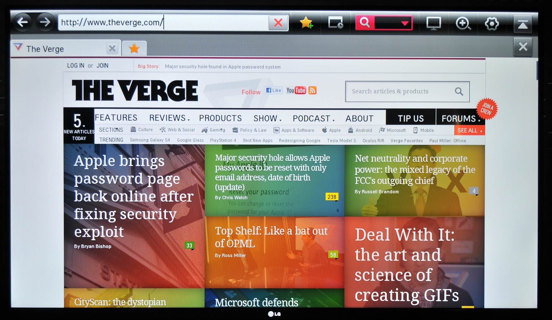 En el día a día el comportamiento del navegador es adecuado. Las páginas web cargan rápido si disponemos de una buena conexión a Internet y el renderizado de la página es idéntico al que obtenemos con un navegador convencional. Sin embargo desplazarse por las páginas web hacia arriba o abajo es algo lento, especialmente en el caso de páginas complejas (como TheVerge.com) donde el scroll se realiza a trompicones.
