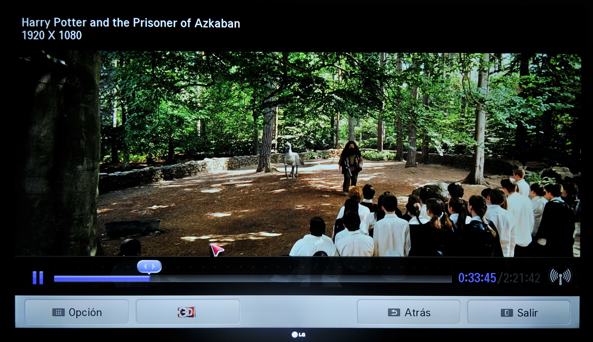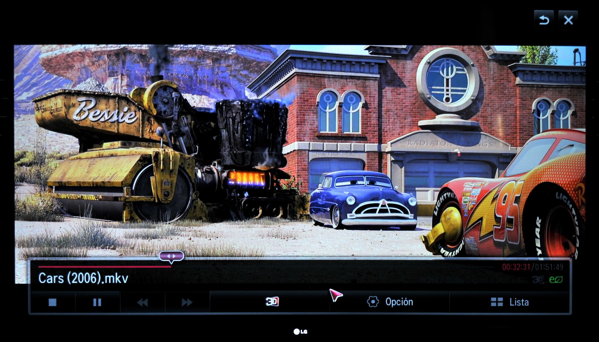 Además de reproducir contenidos almacenados en discos en red, es posible enviar un contenido desde un teléfono móvil al televisor LG vía Smart Share. En nuestras pruebas con los teléfonos HTC One X+, Sony Xperia Z y LG Optimus L9, solo fue posible enviar directamente contenidos desde el teléfono LG Optimus L9 a través de la aplicación LG SmartShare (lo cual no es extraño dado que televisor y móvil son de la misma marca). El resto de teléfonos no detectaba ningún dispositivo de reproducción en la red.