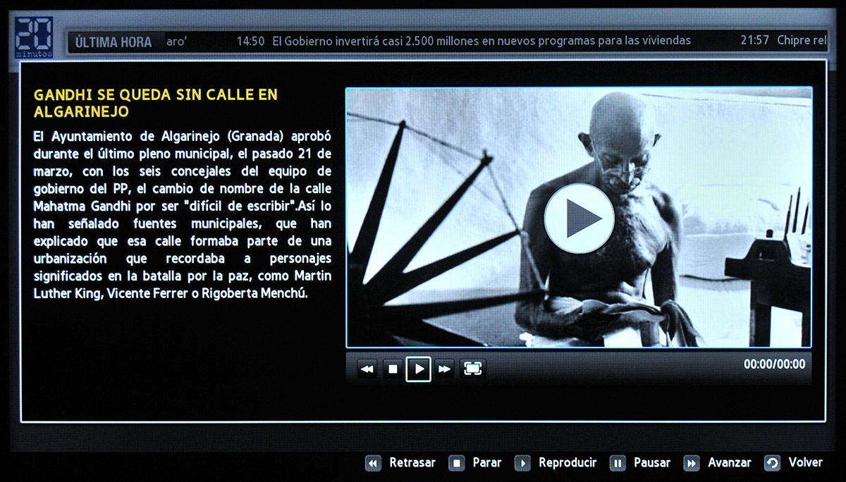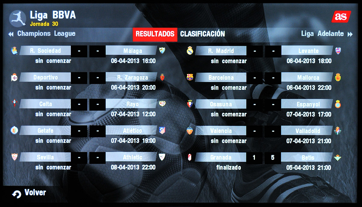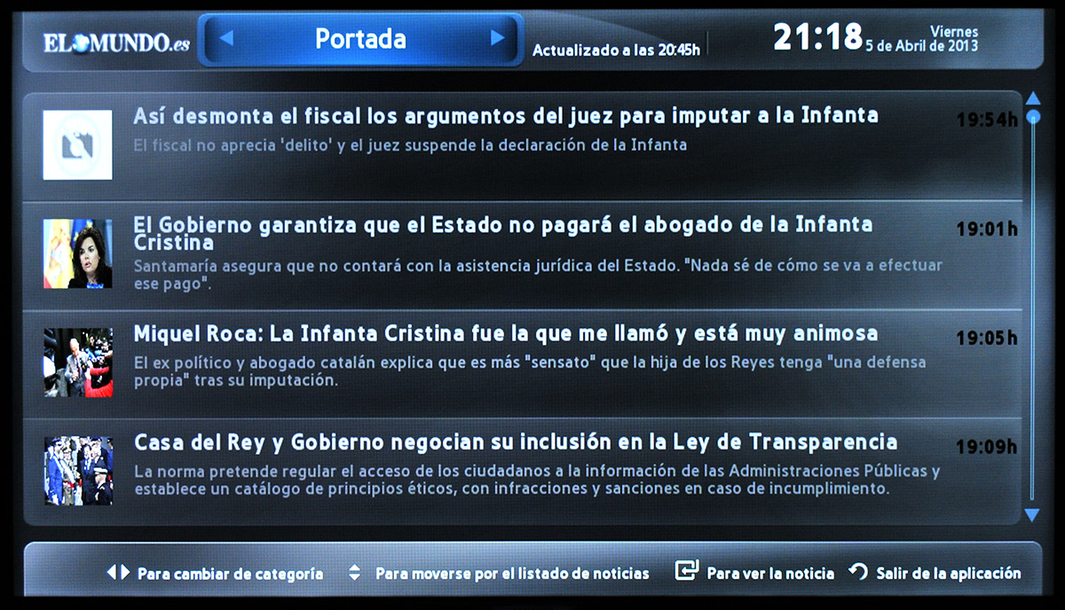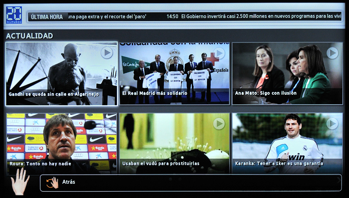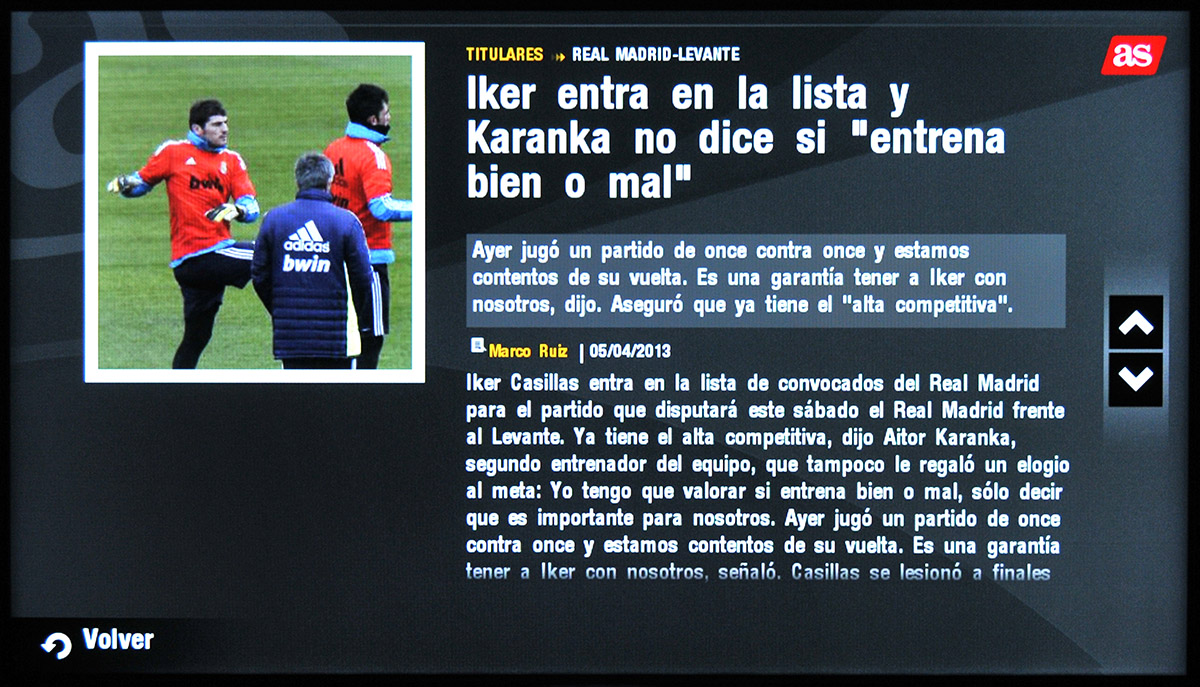 Las aplicaciones de noticias As, Marca, MyMadrid y 20 Minutos muestran las noticias del día con un interfaz adaptado a la televisión, y algunas de ellas permiten acceder a vídeos.