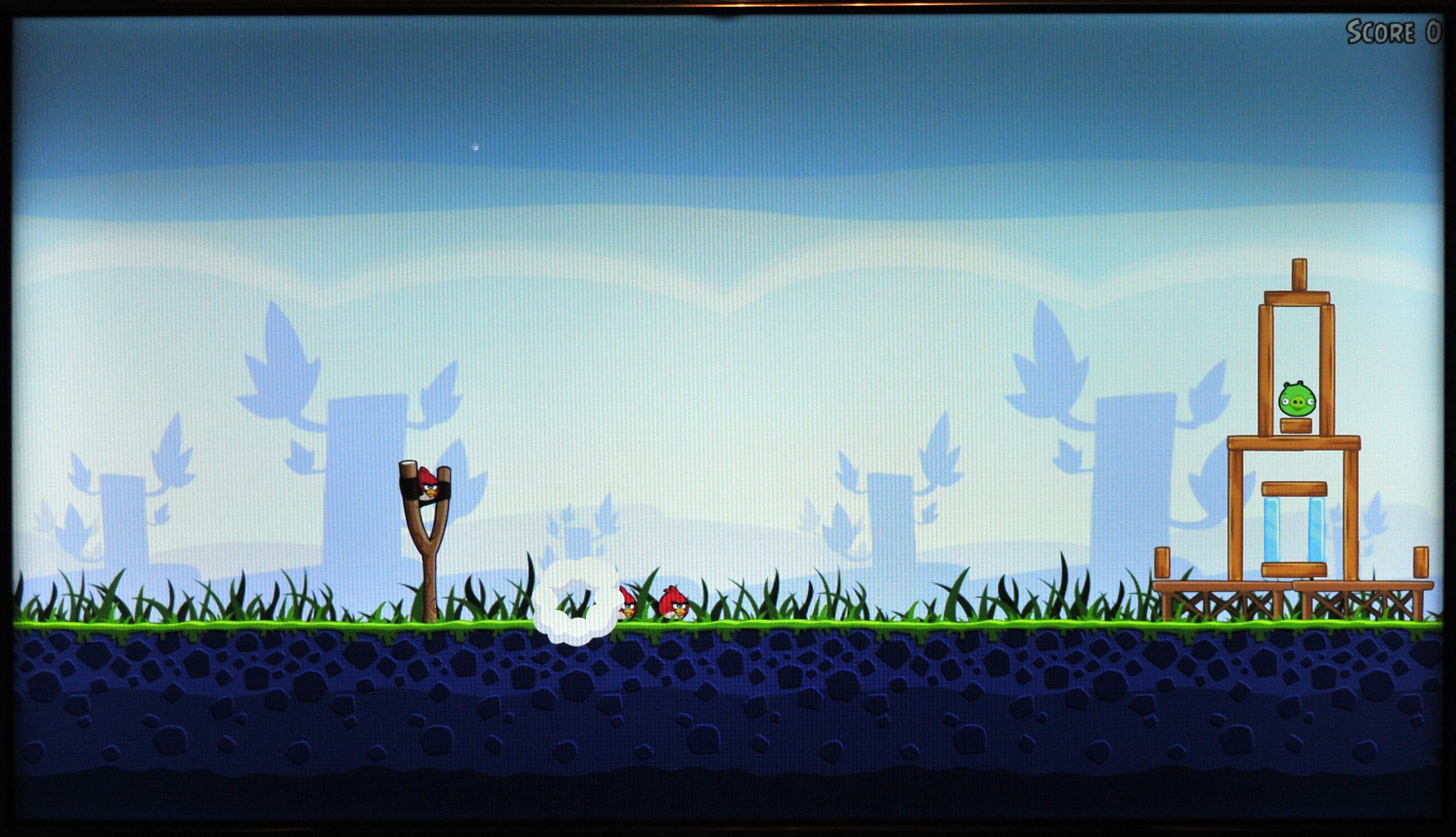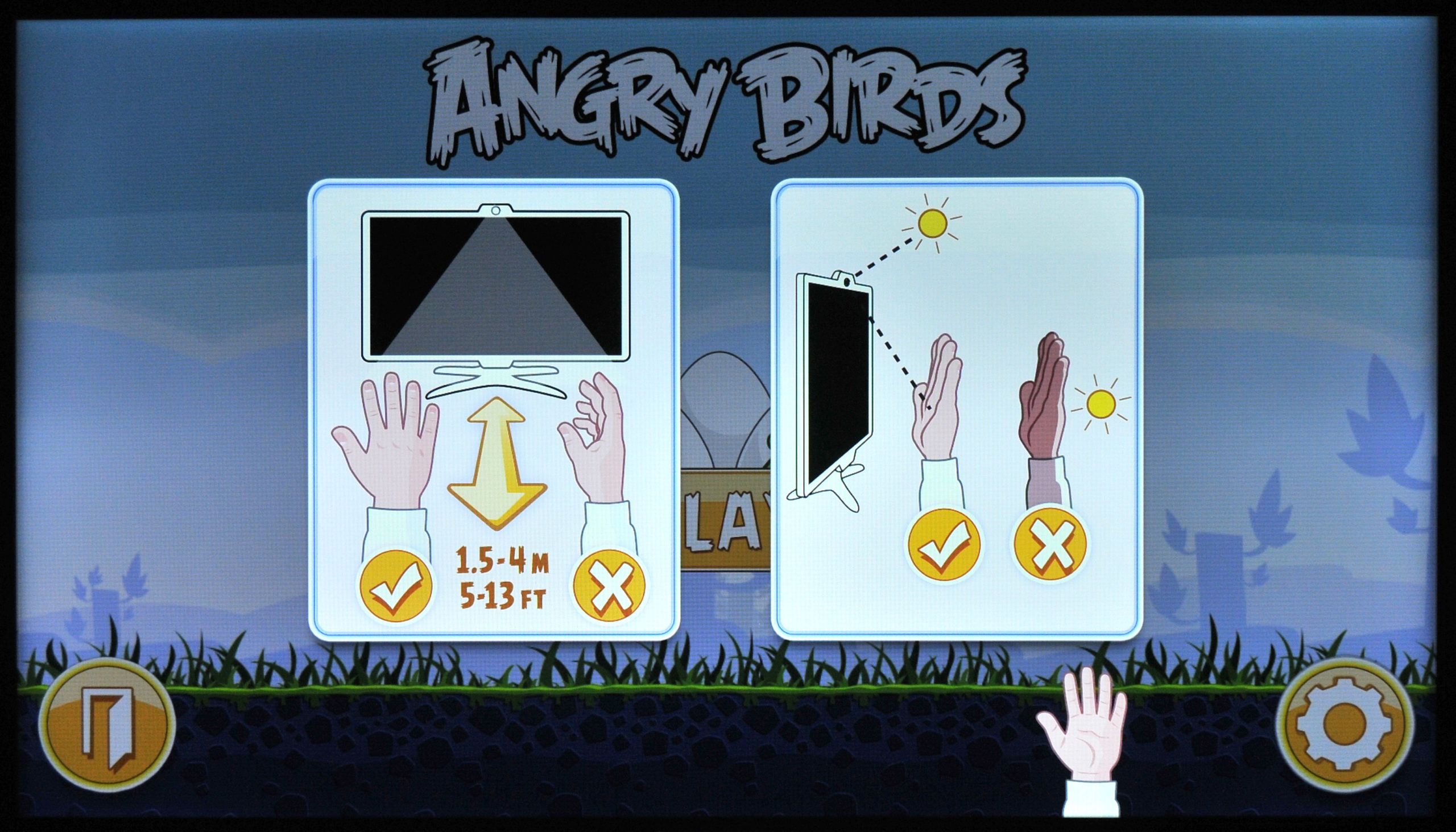 Samsung ha incorporado también el famoso juego Angry Birds en su plataforma Smart TV con una peculiaridad: se maneja con gestos de la mano y movimientos del brazo. Aunque lo comentaremos con más detalle en la sección de controles, el televisor que hemos probado es capaz de reconocer gestos, como si se tratase del Kinect de la Xbox, gracias a la cámara que incorpora. En nuestras pruebas, el juego se manejaba bastante bien.