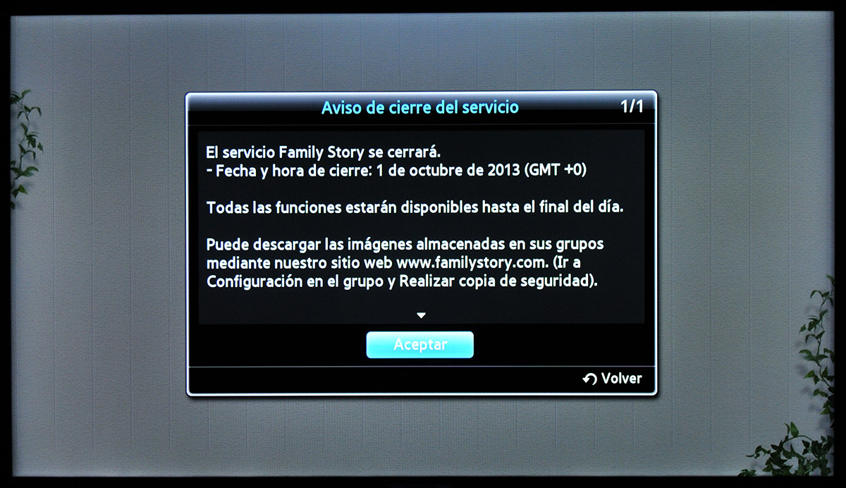 La aplicación Family Story es una de las destacadas en la zona central de la pantalla pero, al abrirla, nos encontramos con un mensaje que dice que el servicio se cerrará el 1 de octubre de 2013. Por lo tanto no merece la pena hablar sobre esta aplicación ya que sus días están contados.