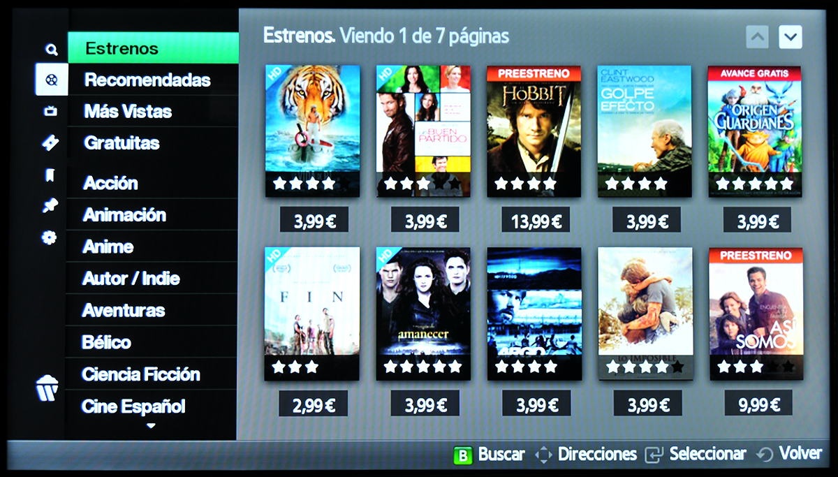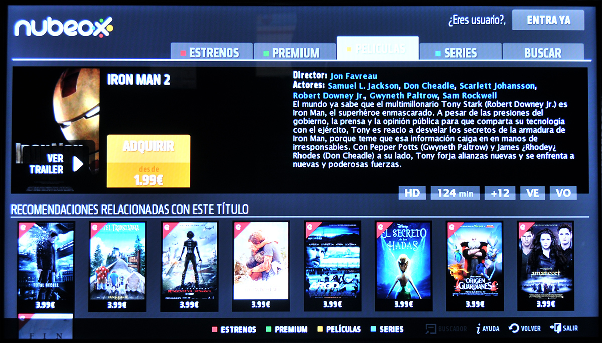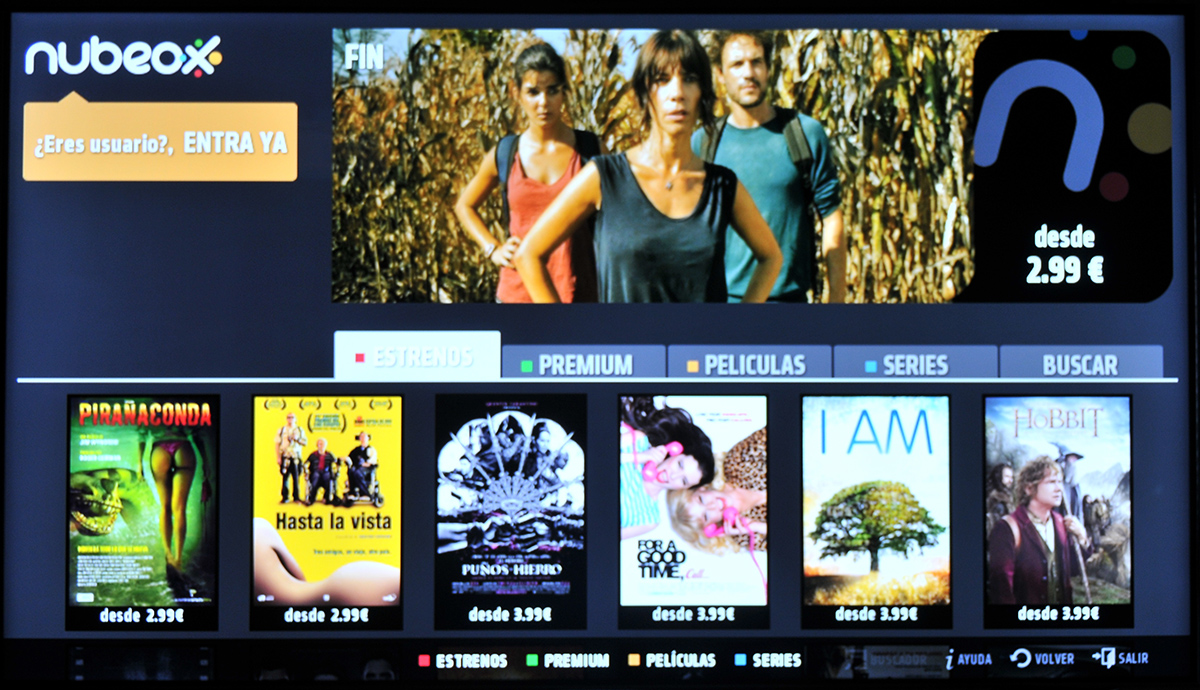 Las aplicaciones Nubeox y Wuaki.tv son videoclubles online que permiten alquilar o comprar película y series, tanto en definición estándar como en HD. Wuaki.tv tiene un interfaz con bastantes opciones, especialmente a la hora de buscar películas por género. Lamentablemente no hemos podido comprobar la calidad del vídeo HD ya que todos los contenidos son de pago, y los trailers son en baja definición.