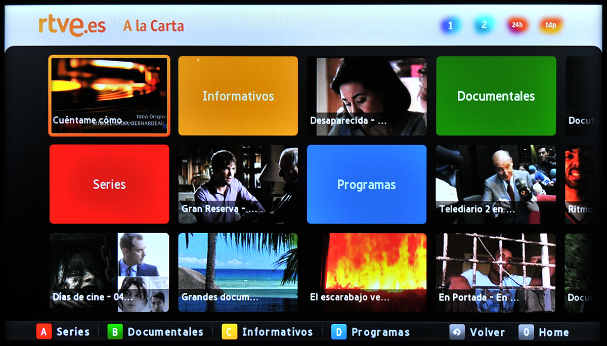 Adicionalmente tenemos accesos directos pulsando las teclas de letras de colores del mando a distancia (A, B, C y D) que nos permiten ocultar la barra superior, explorar por vínculos/cursor (al mover las flechas el cursor salta de link en link de la página/se desplaza libremente por la página) y activar/desactivar PIP (para ver la imagen de la televisión en una pequeña ventana mientras navegamos).