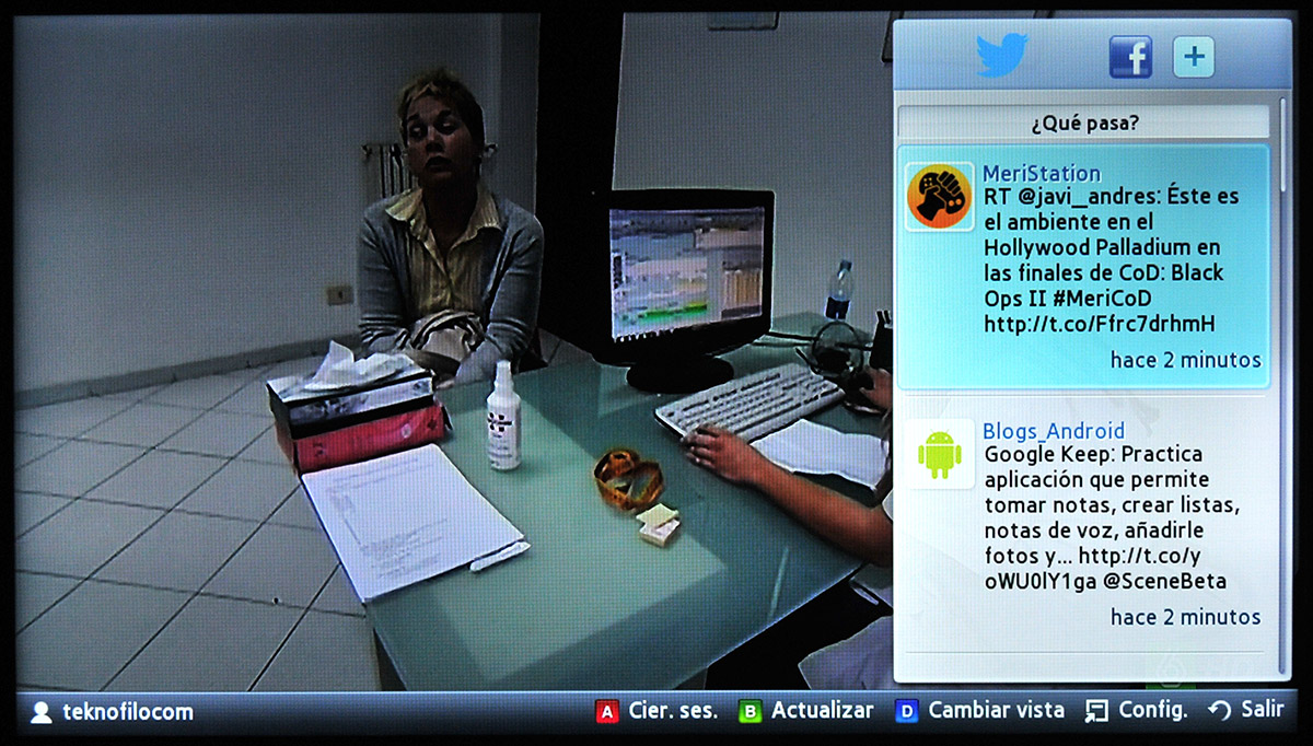 La aplicación Social TV permite ver la televisión a la vez que se interactúa con los contactos de Facebook, Twitter y Google+ gracias a una nueva ventana que aparece junto a la imagen del televisor o sobreimpresionada sobre la misma.