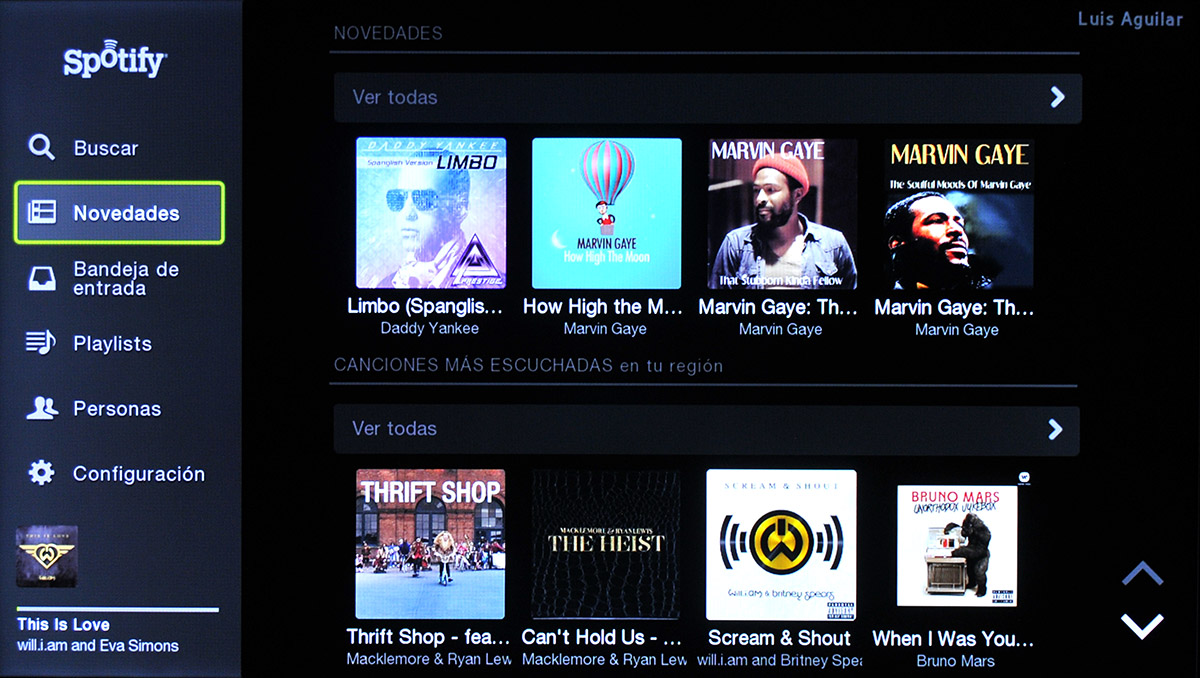 Spotify es una de las aplicaciones estrella que incorpora Samsung en sus televisores. Posee unas funcionalidades parecidas a la aplicación de escritorio - novedades, bandeja de entrada, playlists, amigos, etc. - y en nuestras pruebas ha funcionado realmente bien.