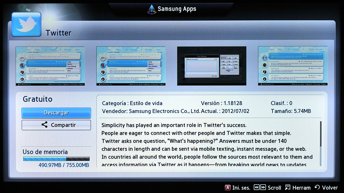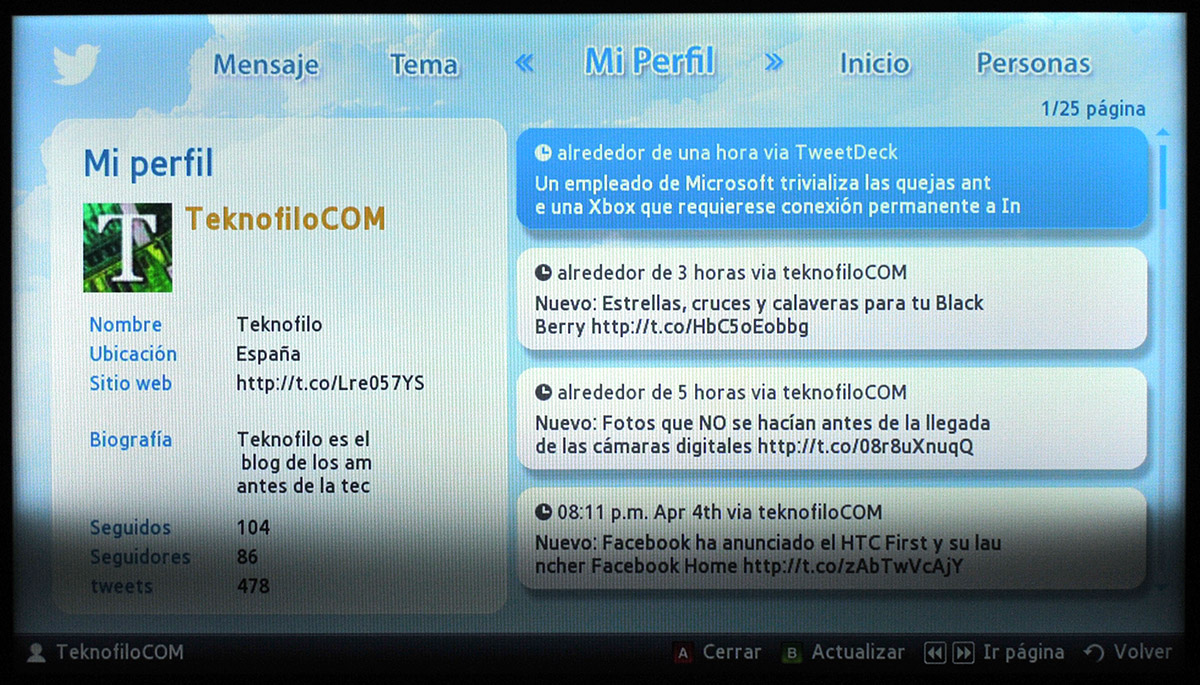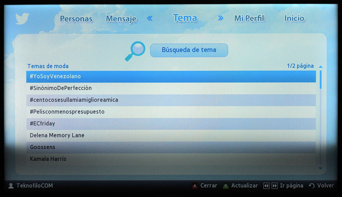 La idea es interesante, especialmente para Twitter ahora se ha popularizado el uso de un hashtag para hacer comentarios sobre un programa de televisión. Sin embargo, en la aplicación Social TV no es posible filtrar los tweets para que sólo se muestren los que contengan un hashtag en particular, ni tampoco se puede definir un hashtag para que se añada automáticamente a cada tweet escrito durante el transcurso de un programa de televisión. Esto unido a lo complicado que resulta escribir sobre la pantalla hacen que esta aplicación no sea cómoda de utilizar en el día a día.