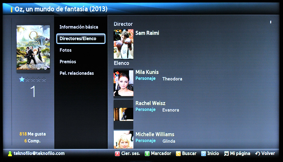 A diferencia de otros Smart TVs, en el de Samsung la información adicional que se muestra sobre cada película o serie compartido vía Plesk es muy escasa. En cualquier caso, la reproducción funcionó correctamente, que es lo realmente importante.