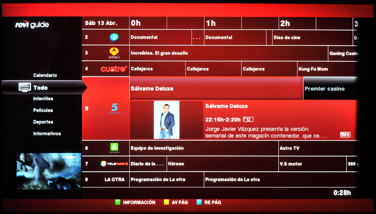 - Otros: El Tiempo y Rovi guide