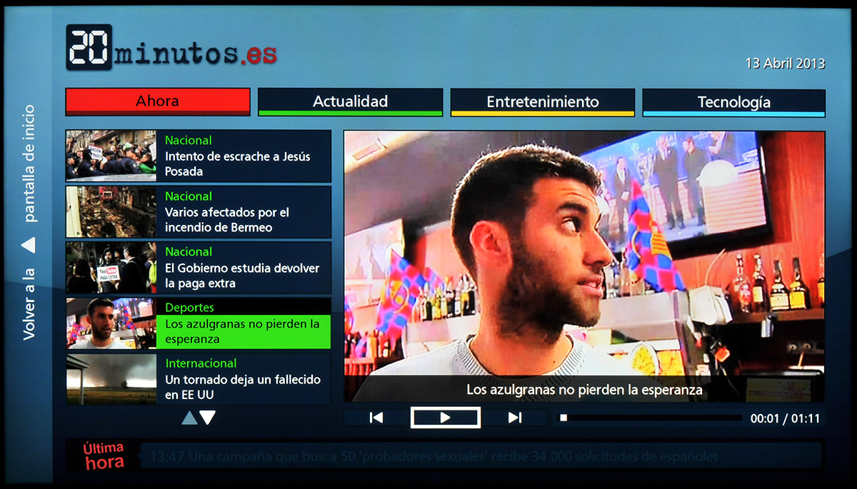 Las aplicaciones de emisoras de televisión preinstaladas (Rtve.es, Clan TV y Eitb) funcionan bien y, con una buena conexión a Internet, hemos sido capaces de ver vídeo en streaming sin problemas.