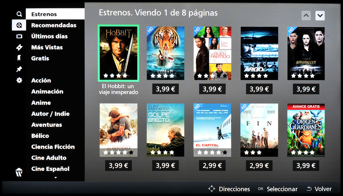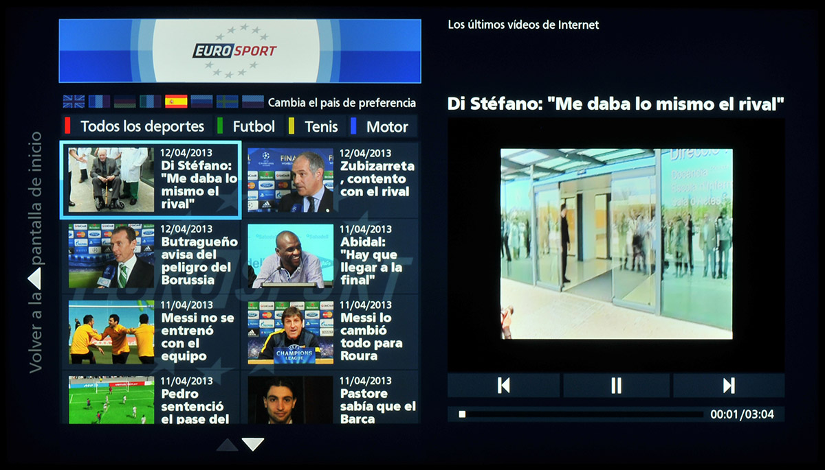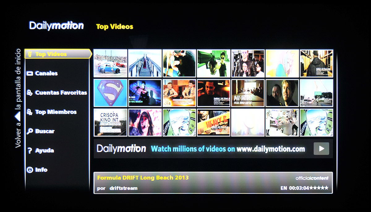 - Vídeos bajo demanda: YouTube, Daily Motion, Viaway, Vimeo, UStream, CNBC, Eurosport player y Wuaki.tv