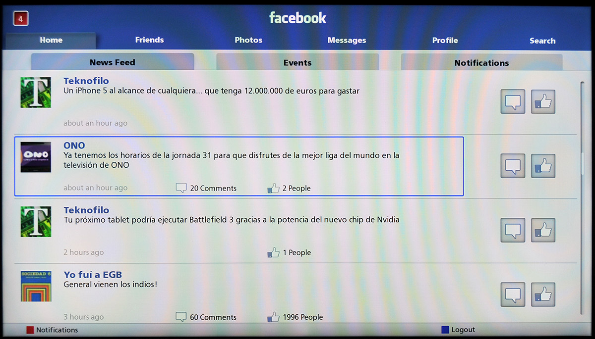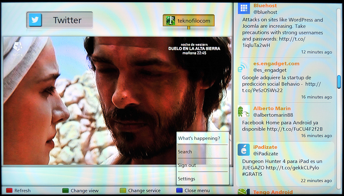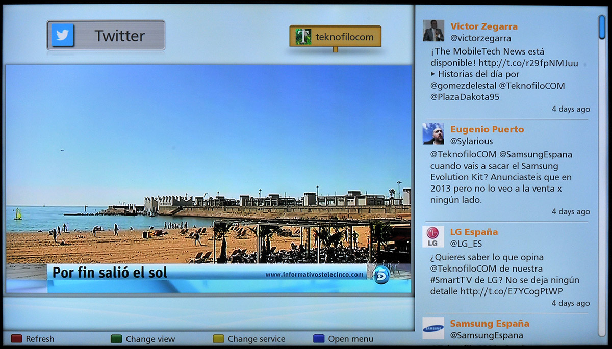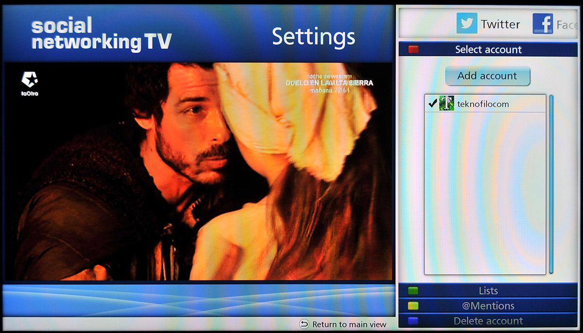 Social Networking TV permite ver la televisión a la vez que se interactúa con los contactos de Facebook y Twitter gracias a un nuevo espacio que aparece a la derecha de la imagen del televisor o bien en la parte inferior de la misma.