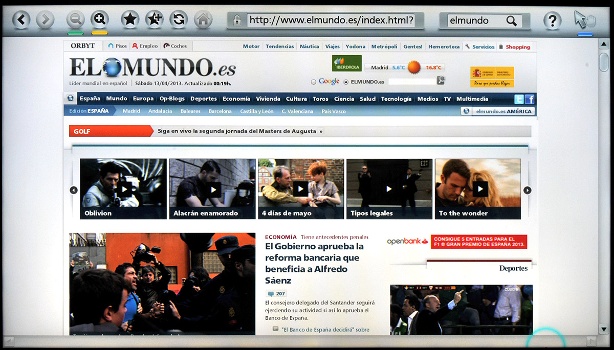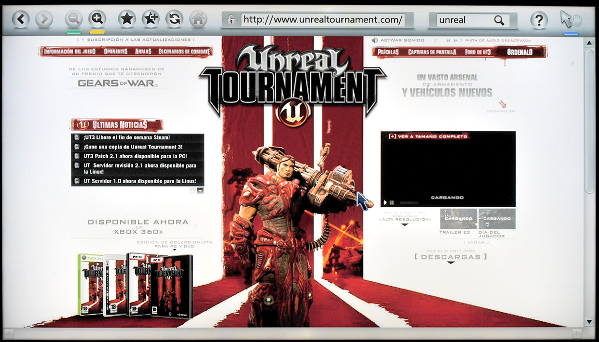 Web El MundoPor suerte tampoco hemos sufrido ningún cierre ni mensaje de error inesperado. Incluso la página web de Unreal Tournament, que está completamente basada en Macromedia Flash, se reproduce correctamente en la televisión y más rápido que en otras plataformas de Smart TV que hemos probado.
