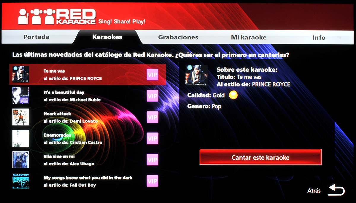 Red Karaoke es una aplicación para, como su propio nombre indica, cantar en modo karaoke y cuenta con una interfaz bastante cuidada. Requiere una suscripción para disfrutar de la mayor parte de las canciones.