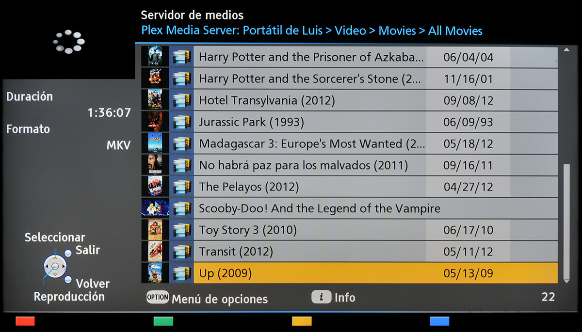 La información adicional que se muestra sobre cada película o serie compartida vía Plesk en el televisor Panasonic es muy escasa. En cualquier caso, la reproducción funcionó correctamente, que es lo realmente importante.