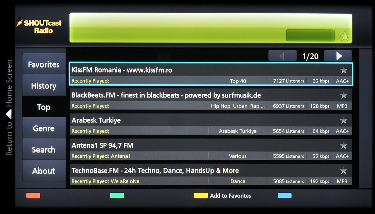 - Música: Aupeo!, ShoutCast Radio, Red Karaoke e iConcerts