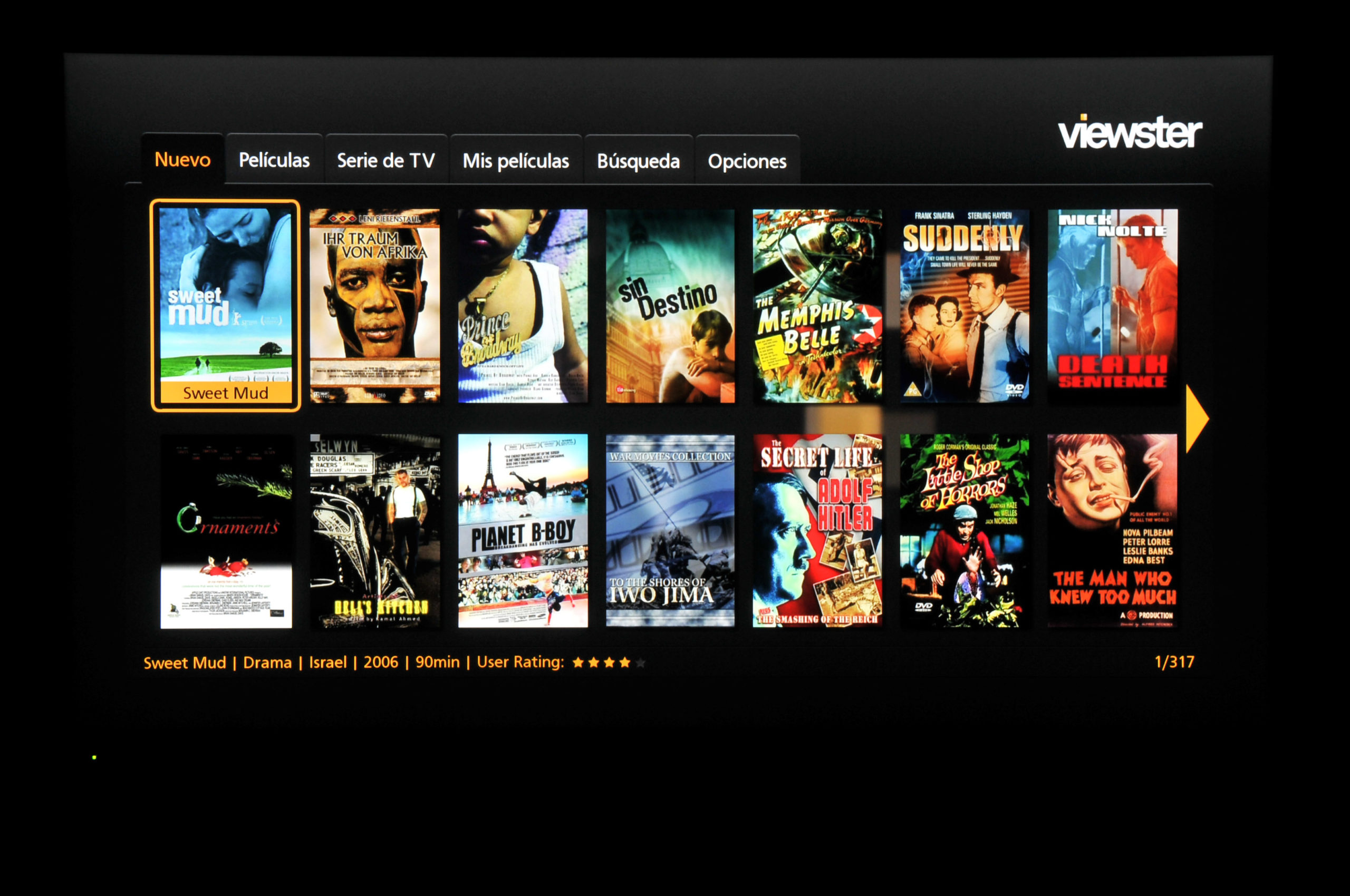 Las aplicaciones Viewster y Wuaki.tv son videoclubles online que permiten alquilar o comprar películas y series, tanto en definición estándar como en HD. Viewster permite ver algunas películas gratuitamente y Wuaki.tv tiene un interfaz con bastantes opciones, especialmente a la hora de buscar películas por género. Lamentablemente no hemos podido comprobar la calidad del vídeo HD de Wuaki.tv ya que todos los contenidos son de pago, y los trailers son en baja definición.